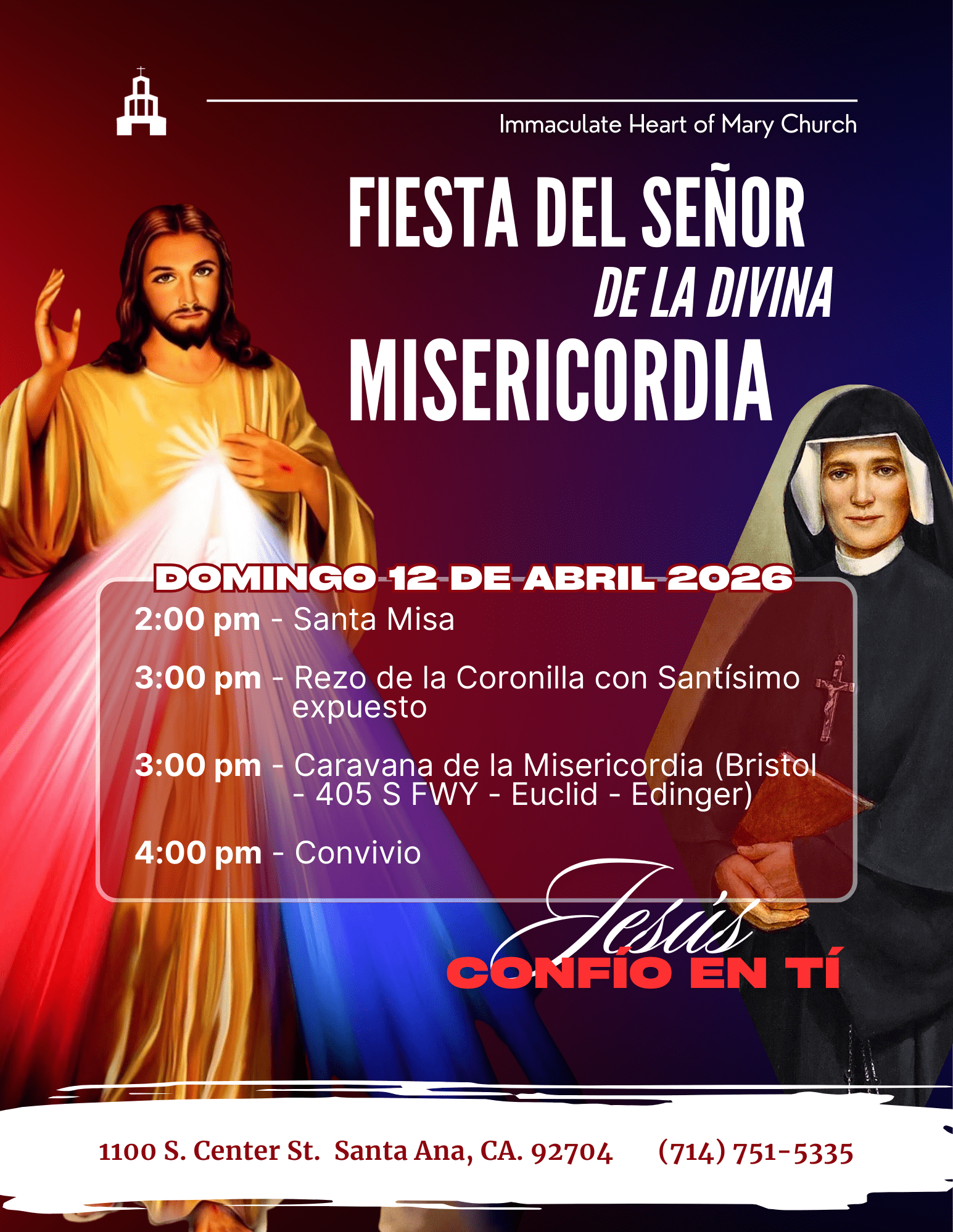 3:00 PM – Caravana de la Misericordia (Recorrido: Bristol – FWY 405 – Euclid – Edinger)